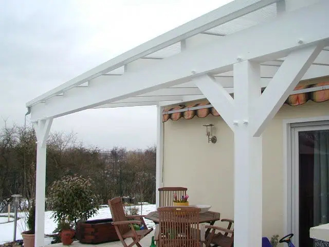 In unserem Programm finden Sie sowohl Terrassenüberdachungen aus Holz als auch aus Aluminium. Beide Materialien haben ihre Vorteile, doch sieht eine Terrassenüberdachung aus Holz natürlicher aus und fügt sich daher angenehm in Ihren Außenbereich ein. Zudem bevorzugen wir für unsere Terrassenüberdachung aus Holz das Leimbinderholz, weil es besonders stabil und langlebig ist.