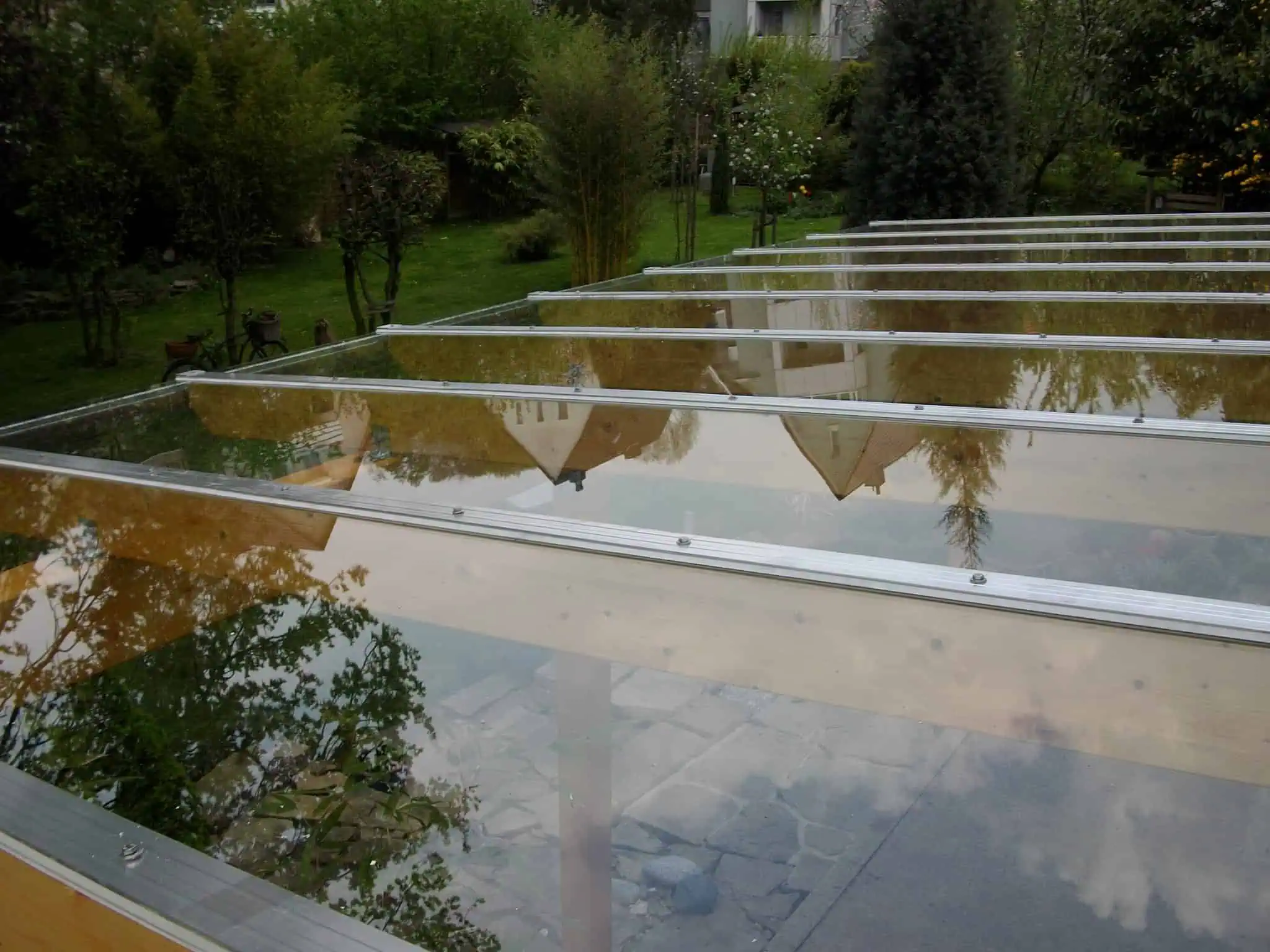 Leimholz ist formstabil und neigt kaum zum Verziehen oder Reißen. Die verleimten Schichten reduzieren natürliche Spannungen im Holz und verhindern Schäden am Glasdach. Dadurch ist ein Terrassendach aus Leimholz besonders langlebig, tragfähig und ideal für großflächige Überdachungen.