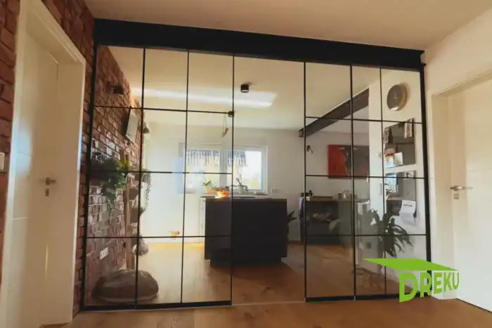 Wenn Sie bei uns eine Glasschiebewand bestellen, dann bekommen Sie nach Ihrer Maßangabe bzw. Skizze einen vorgefertigten Bausatz.