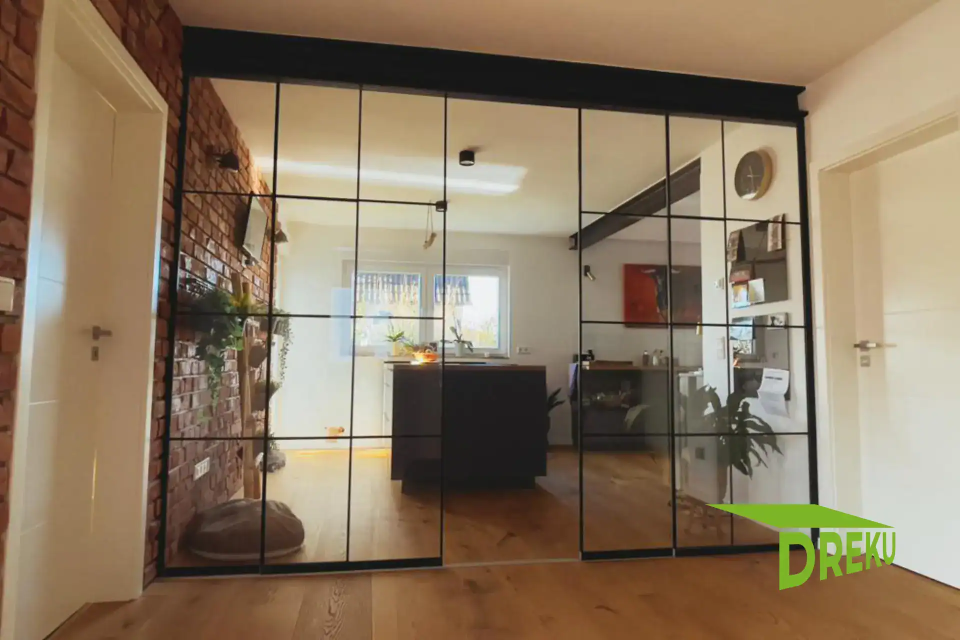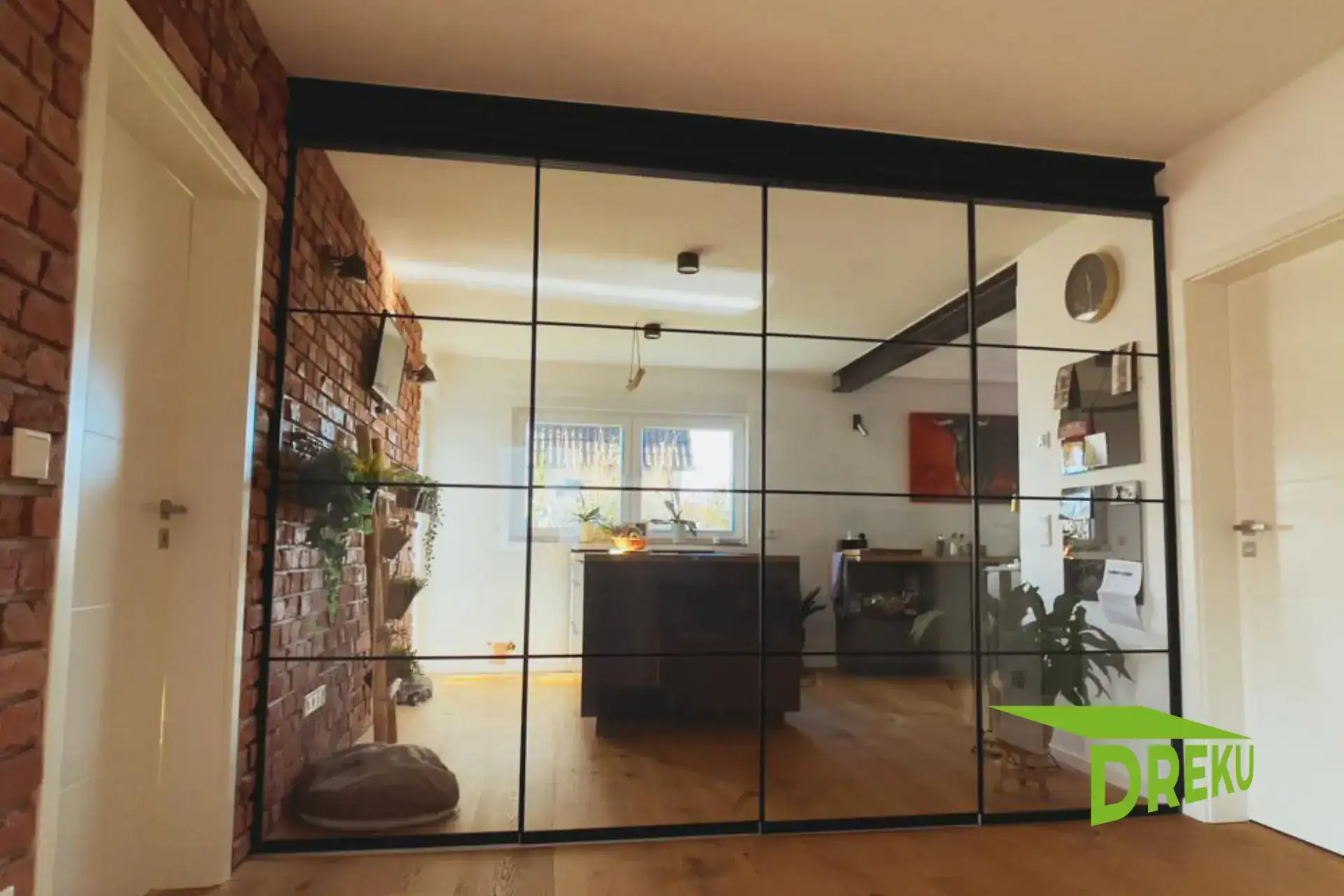 Wenn Sie bei uns eine Glasschiebewand bestellen, dann bekommen Sie nach Ihrer Maßangabe bzw. Skizze einen vorgefertigten Bausatz.