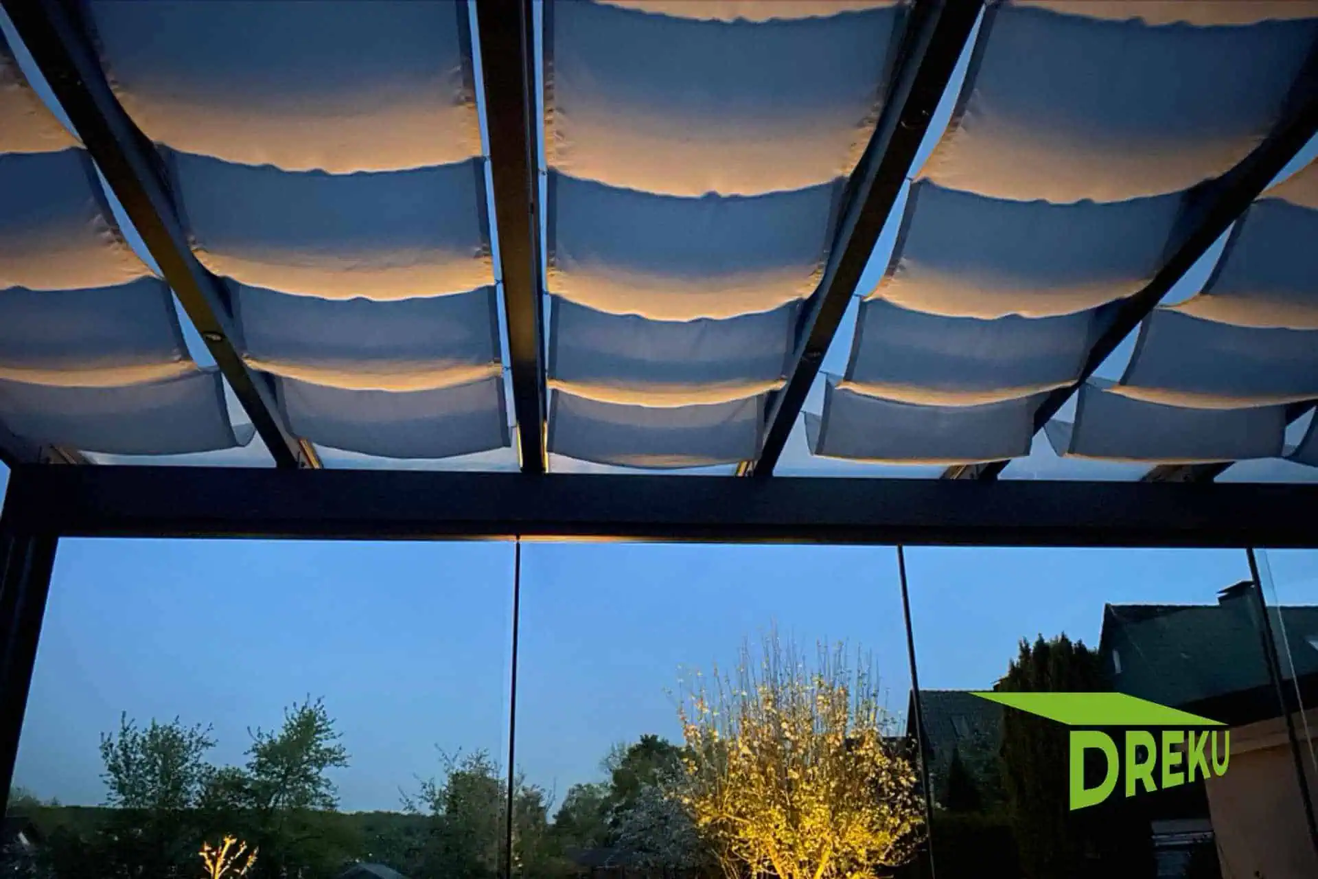 Maßgefertigte Beschattung zwischen den Sparren