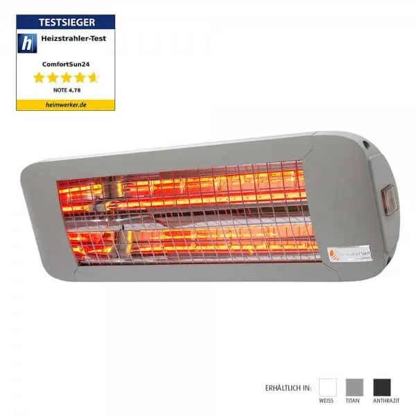 Der Infrarot-Heizstrahler liefert eine Leistung von 1.400 Watt.