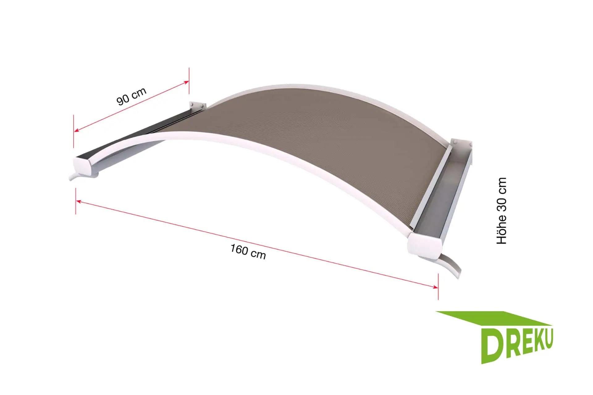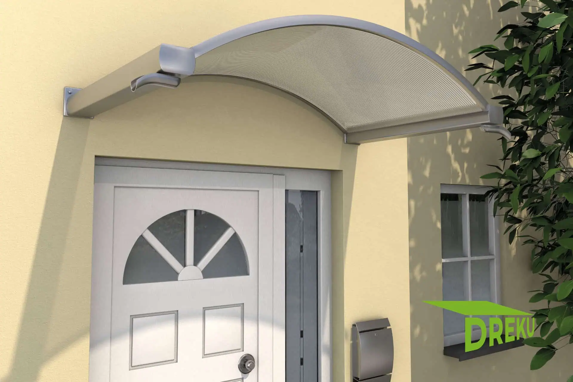 Setzen Sie eigene Akzente in Ihrem Eingangsbereich beispielsweise mit dem weißen Bogenvordach NO. Das elegante Dach besteht aus einem stabilen Rahmen aus pulverbeschichtetem Aluminium und einer robusten Polycarbonat Stegplatte als Abdeckung. Beidseitige angebrachte Regenrinnen runden Form und Funktionalität ab.