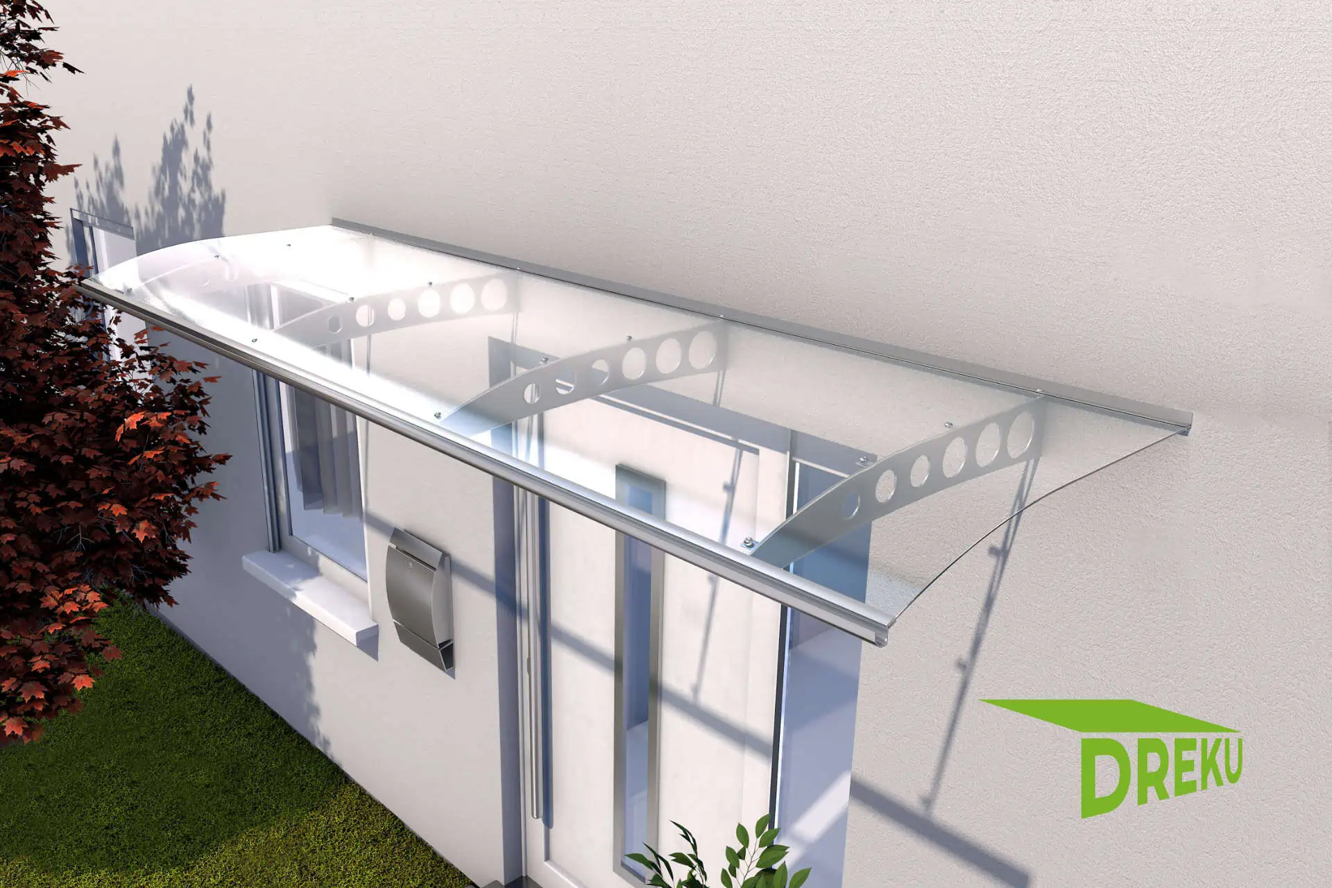 Das Pultvordach Braunschweig ist ein sehr hochwertiges leicht gebogenes Vordach in vier verschiedenen Breiten.