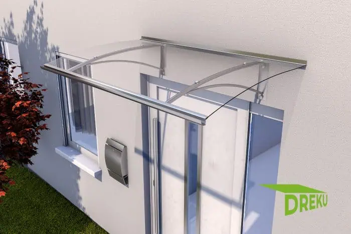 Die Kombination aus pulverbeschichtetem Aluminium und klarem Acrylglas verleiht dem Pultvordach Hannover eine sehr hohe Haltbarkeit und edle Optik.