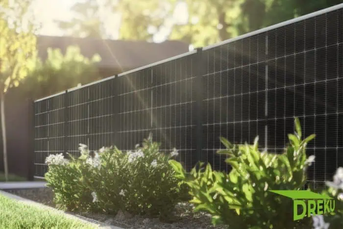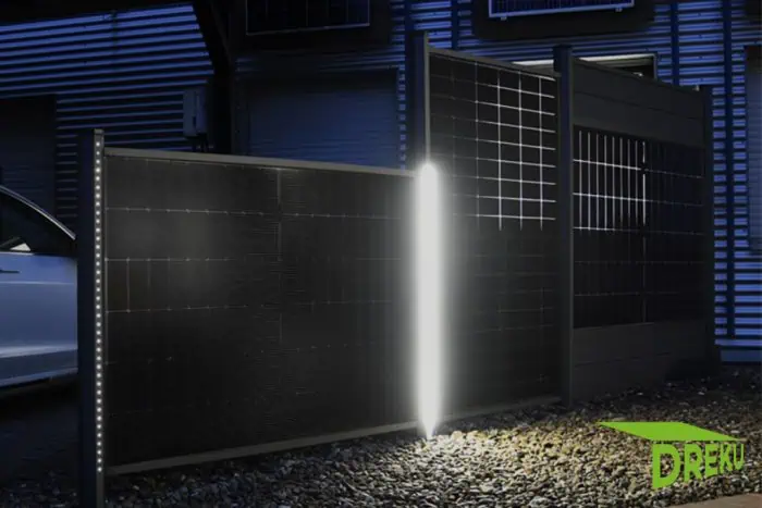 Der DREKUSOLAR PV 2.0 stellt eine funktionale und erstklassige Lösung dar, um den Außenbereich ästhetisch aufzuwerten. Die Montage des Solarzauns kann wahlweise durch spezielle Pfostenträger mit Platte/L-Schuh oder durch das Einbetonieren der Pfosten für eine dauerhafte Befestigung im Boden erfolgen. Der elegante Look des Zauns fügt sich harmonisch in jeden Garten ein und wertet dein Grundstück optisch auf.
